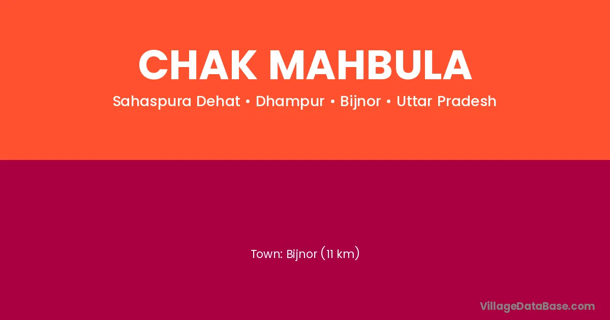 Bijnor (11 km) is the nearest town to Chak Mahbula village for major economic activities and is located approximately 11 km away.