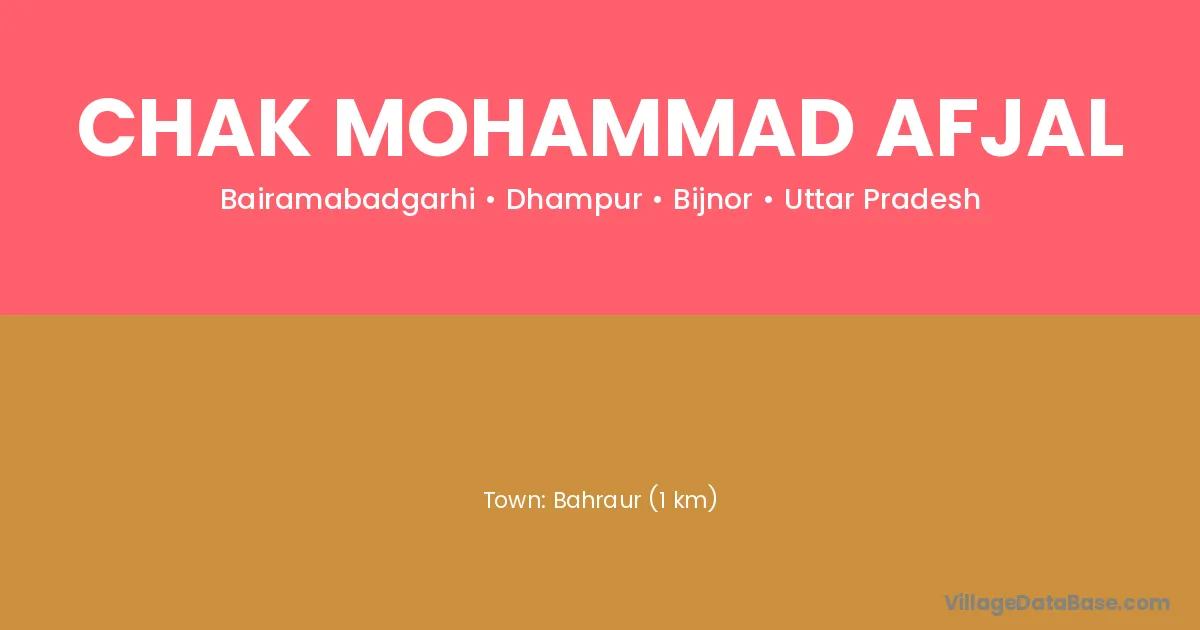 Bahraur (1 km) is the nearest town to Chak Mohammad Afjal village for major economic activities and is located approximately 1 km away.
