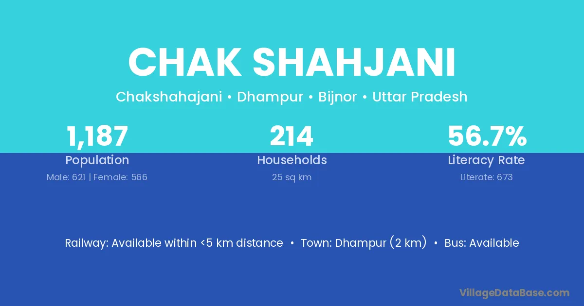 Dhampur (2 km) is the nearest town to Chak Shahjani village for major economic activities and is located approximately 2 km away.