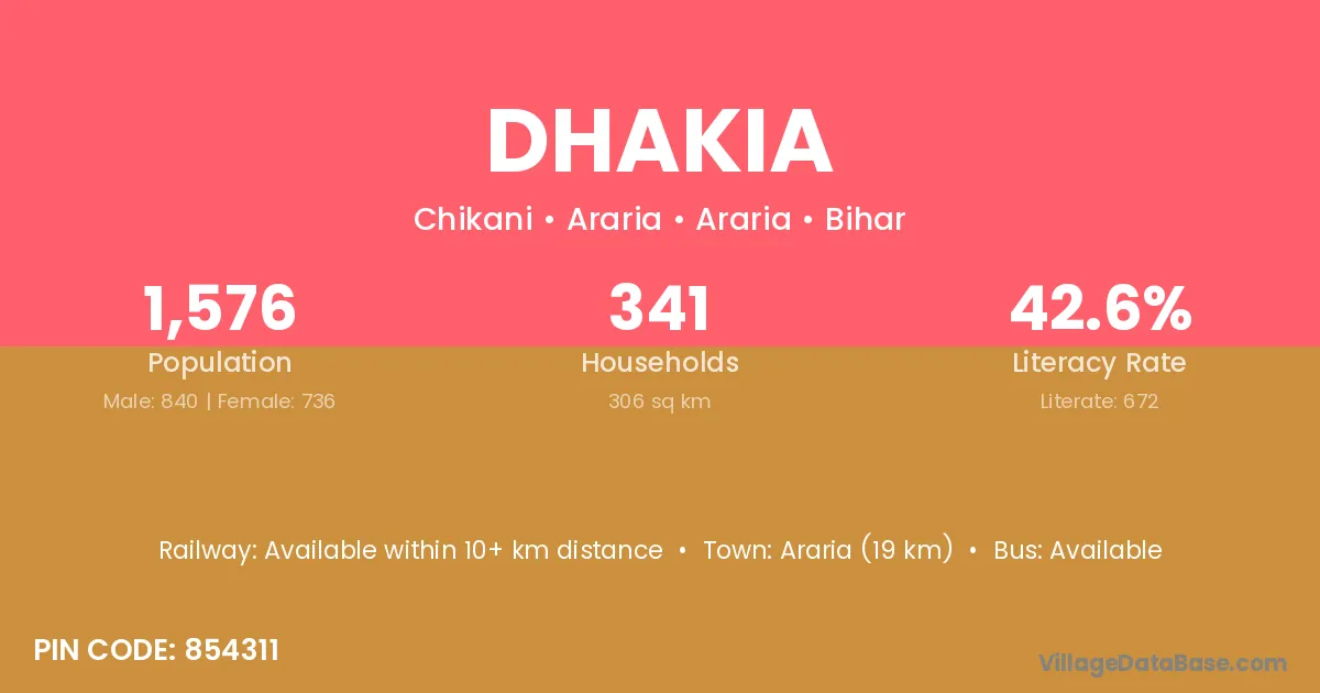 Dhakia village has a total population of 125 people, of which 70 are males and 55 are females.