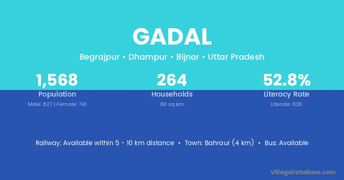 Bahraur (4 km) is the nearest town to Gadal village for major economic activities and is located approximately 4 km away.