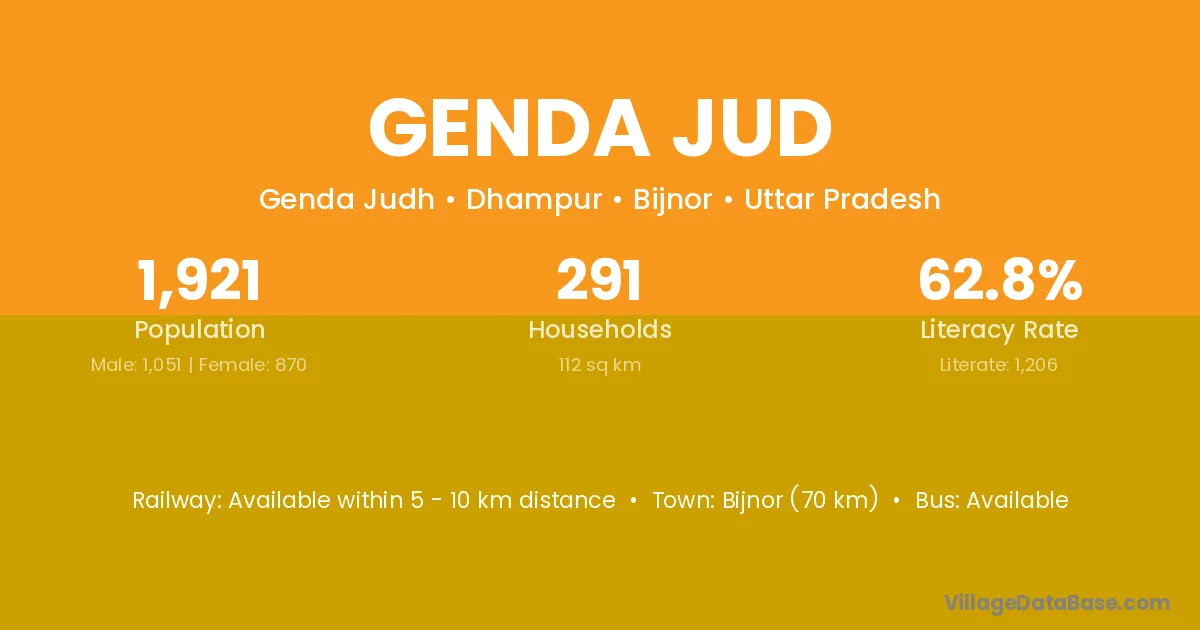 Bijnor (70 km) is the nearest town to Genda Jud village for major economic activities and is located approximately 70 km away.