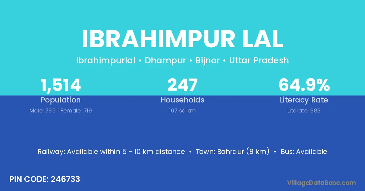 Bahraur (8 km) is the nearest town to Ibrahimpur Lal village for major economic activities and is located approximately 8 km away.