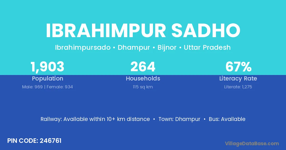 Ibrahimpur Sadho village has a total population of 1,903 people, of which 969 are males and 934 are females.