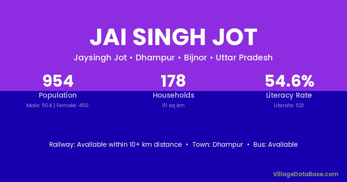 Jai Singh Jot village has a total population of 954 people, of which 504 are males and 450 are females.