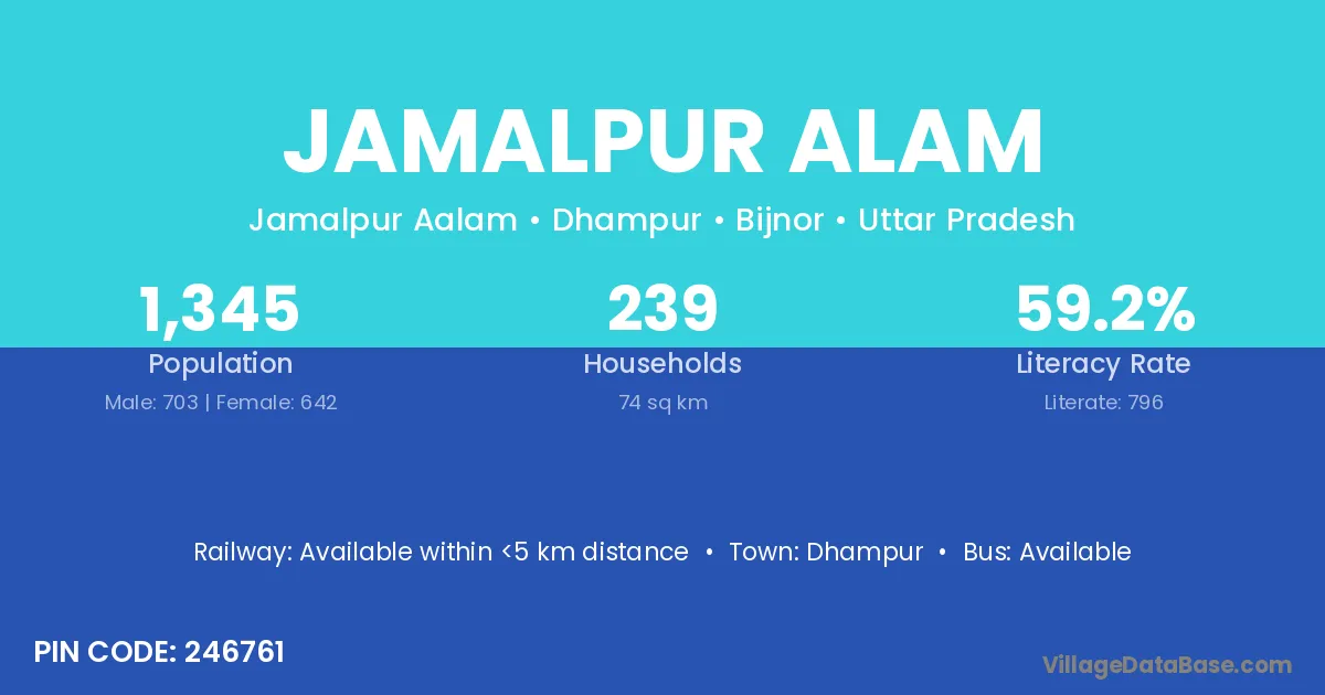 Dhampur is the nearest town to Jamalpur Alam village for major economic activities