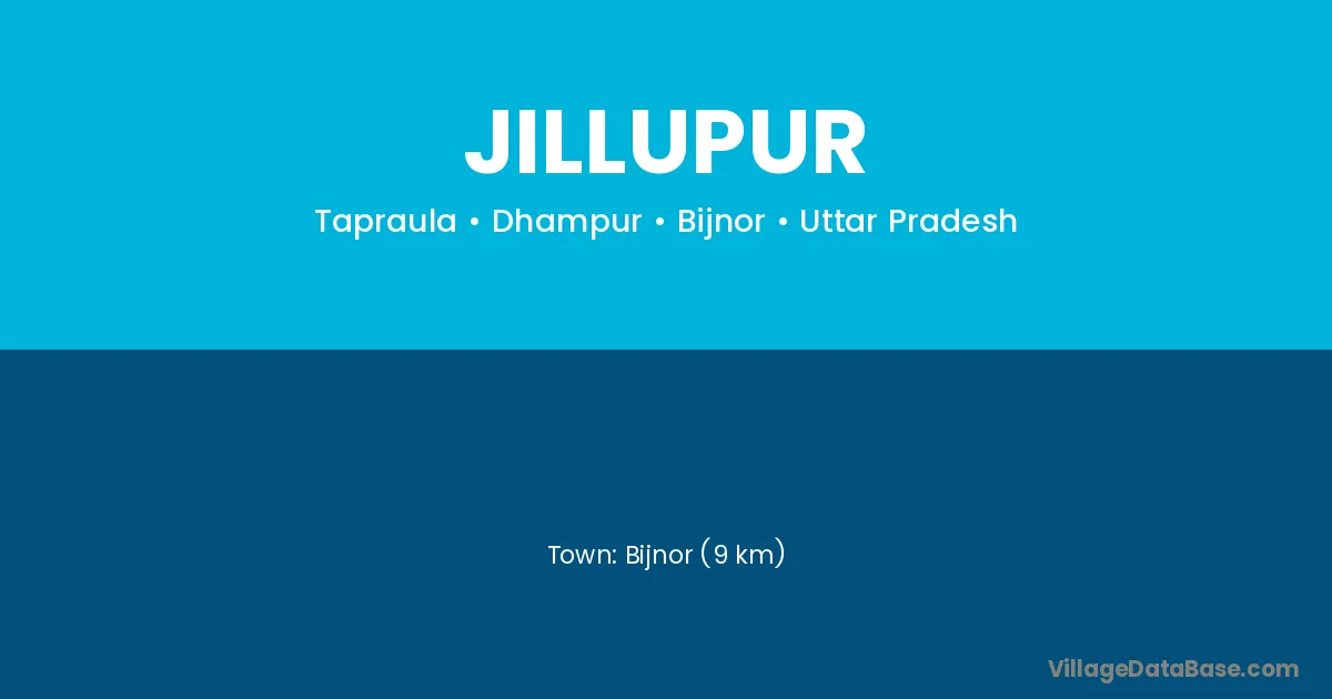 Bijnor (9 km) is the nearest town to Jillupur village for major economic activities and is located approximately 9 km away.
