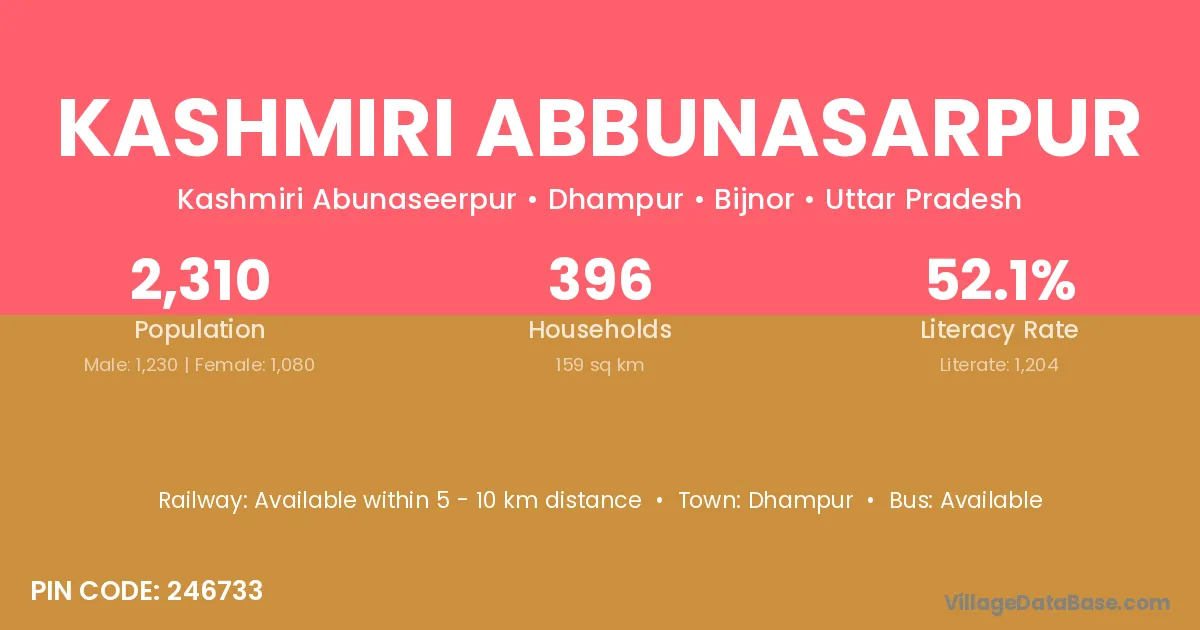 Dhampur is the nearest town to Kashmiri Abbunasarpur village for major economic activities