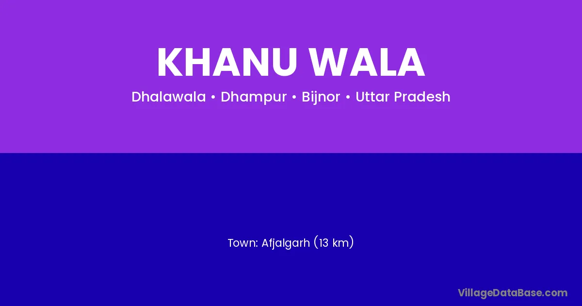 Afjalgarh (13 km) is the nearest town to Khanu Wala village for major economic activities and is located approximately 13 km away.