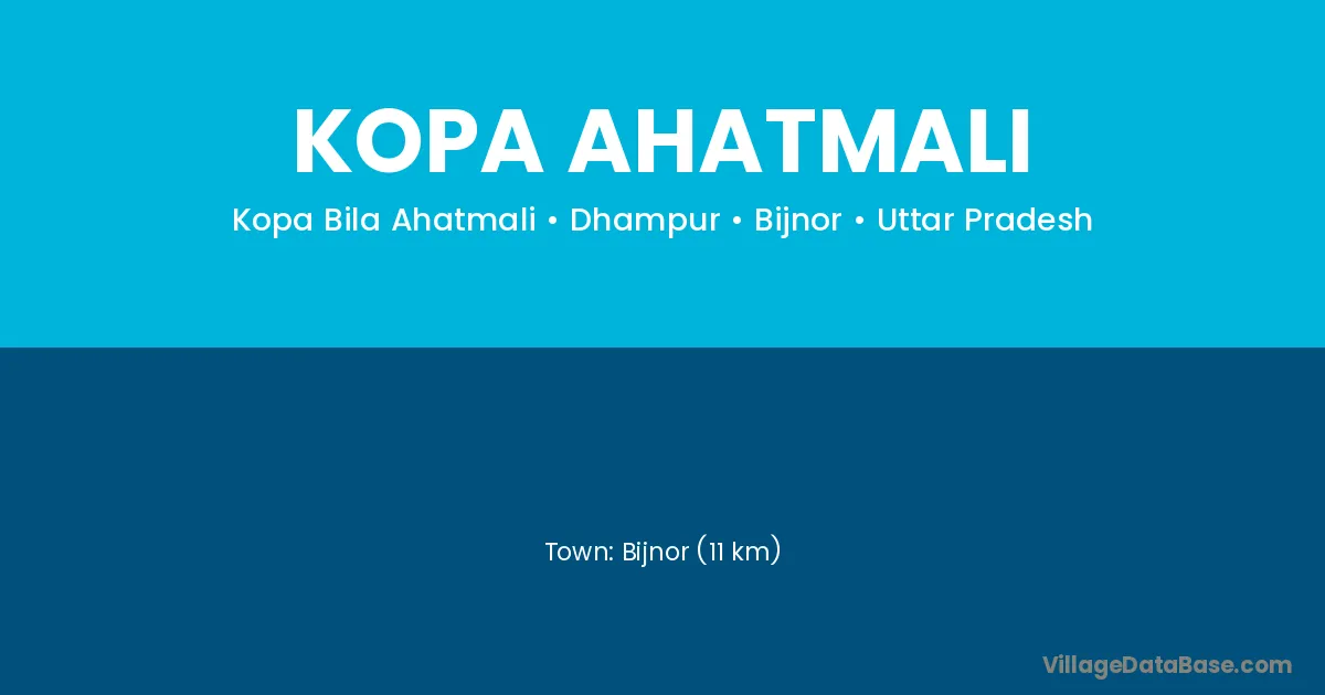 Bijnor (11 km) is the nearest town to Kopa Ahatmali village for major economic activities and is located approximately 11 km away.