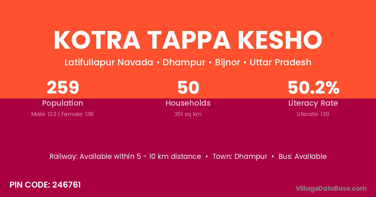 Kotra Tappa Kesho village is located in the Dhampur Tehsil of the Bijnor district in Uttar Pradesh .