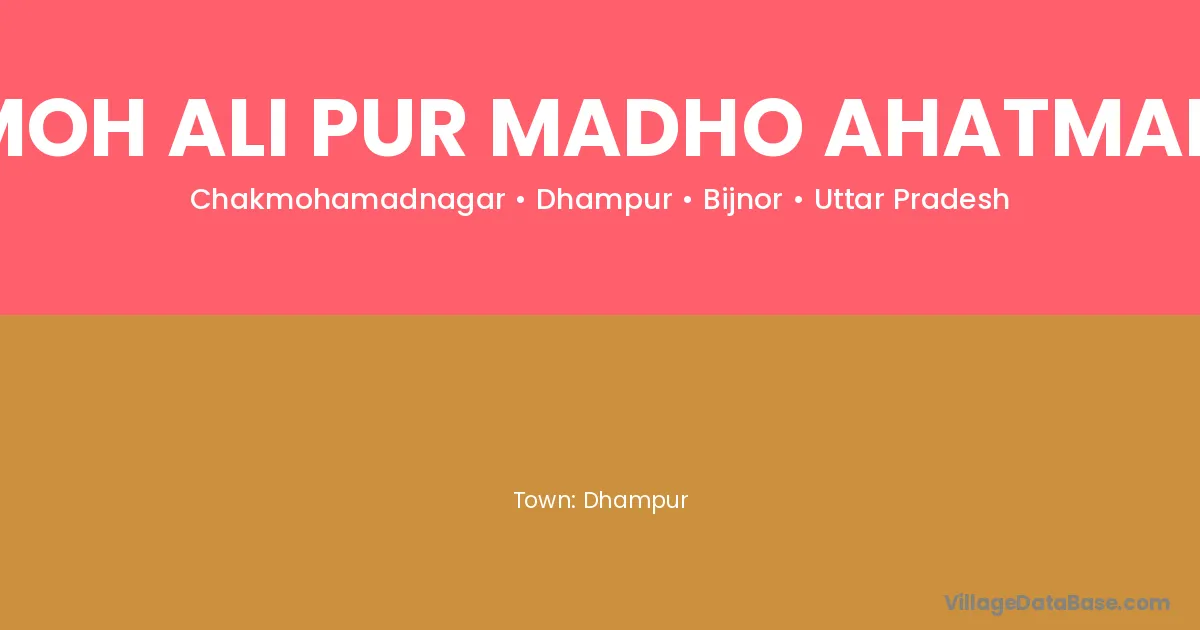 Dhampur is the nearest town to Moh Ali Pur Madho Ahatmali village for major economic activities