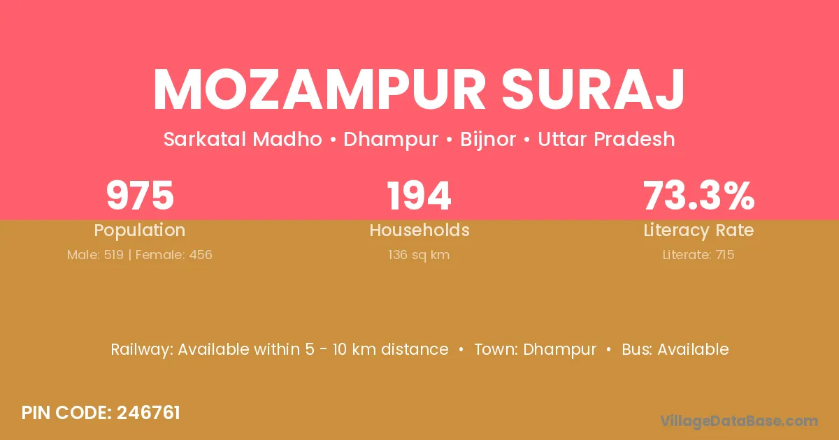Dhampur is the nearest town to Mozampur Suraj village for major economic activities