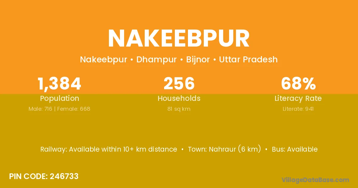 Nahraur (6 km) is the nearest town to Nakeebpur village for major economic activities and is located approximately 6 km away.