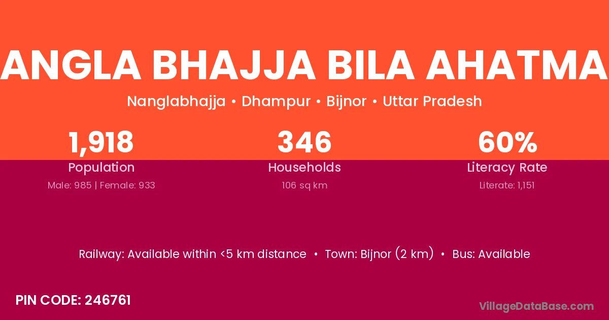 Bijnor (2 km) is the nearest town to Nangla Bhajja Bila Ahatmali village for major economic activities and is located approximately 2 km away.