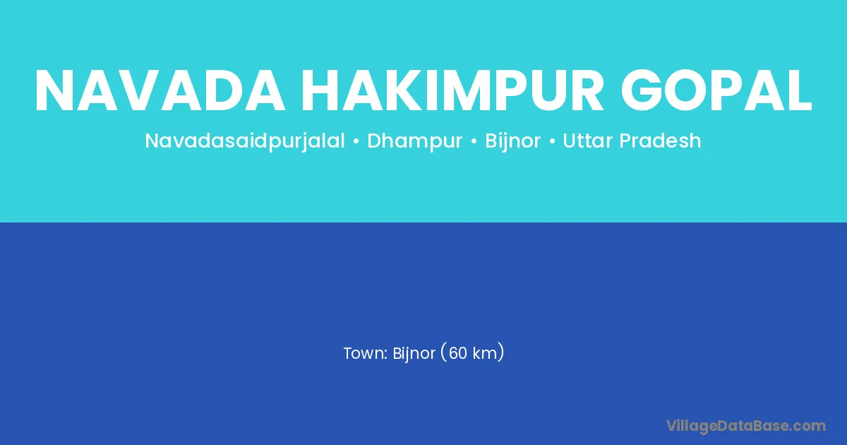 Bijnor (60 km) is the nearest town to Navada Hakimpur Gopal village for major economic activities and is located approximately 60 km away.