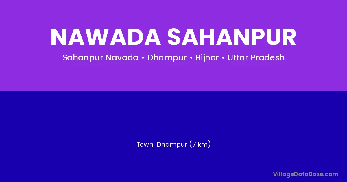 Dhampur (7 km) is the nearest town to Nawada Sahanpur village for major economic activities and is located approximately 7 km away.