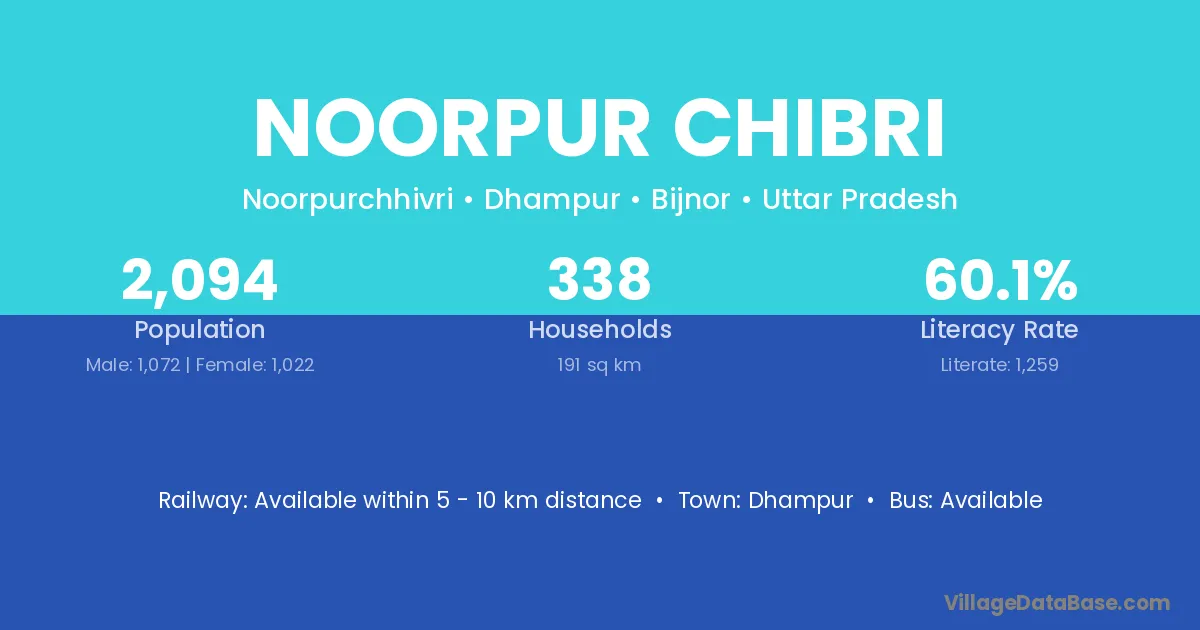 Dhampur is the nearest town to Noorpur Chibri village for major economic activities