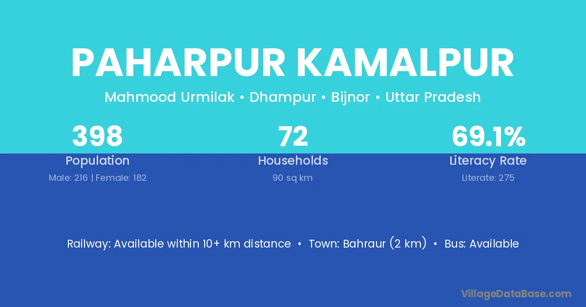 Bahraur (2 km) is the nearest town to Paharpur Kamalpur village for major economic activities and is located approximately 2 km away.