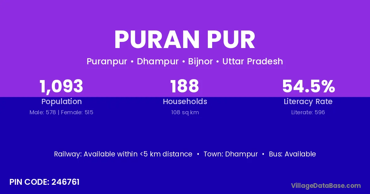 Dhampur is the nearest town to Puran Pur village for major economic activities