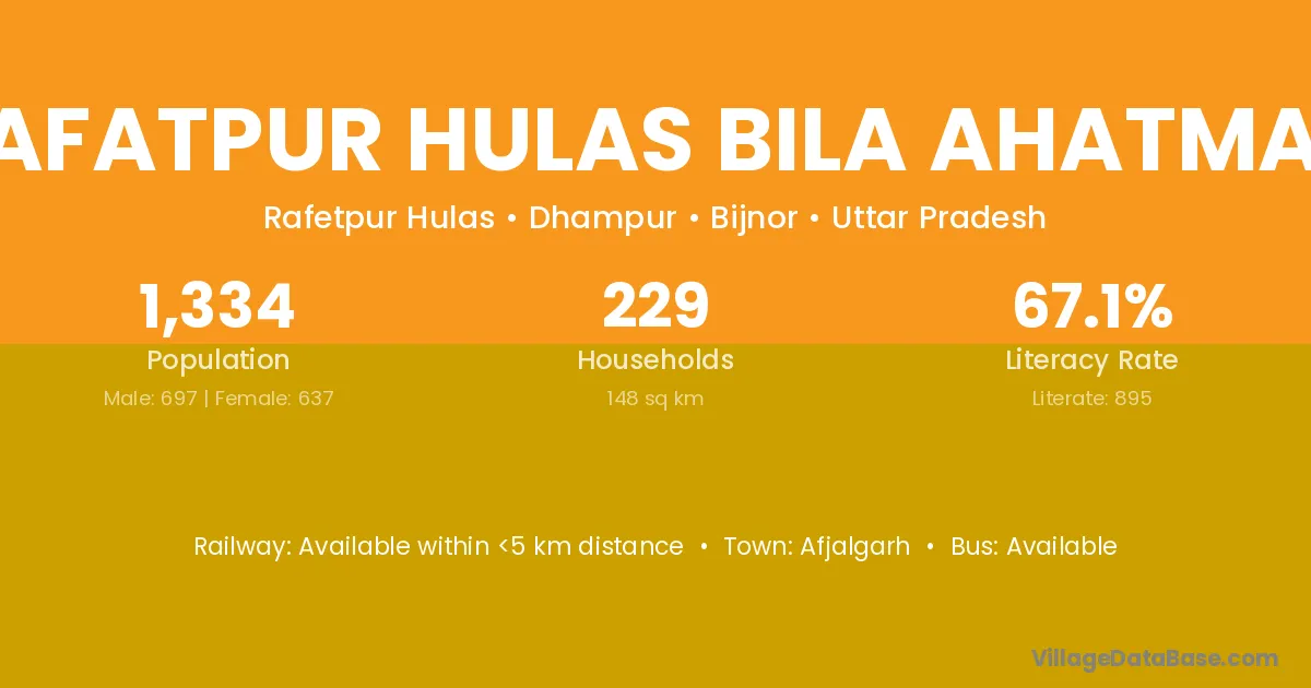 Rafatpur Hulas Bila Ahatmali village has a total population of 1,334 people, of which 697 are males and 637 are females.