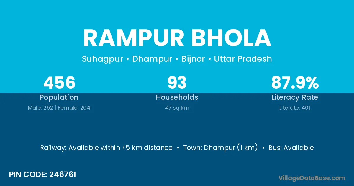 Dhampur (1 km) is the nearest town to Rampur Bhola village for major economic activities and is located approximately 1 km away.
