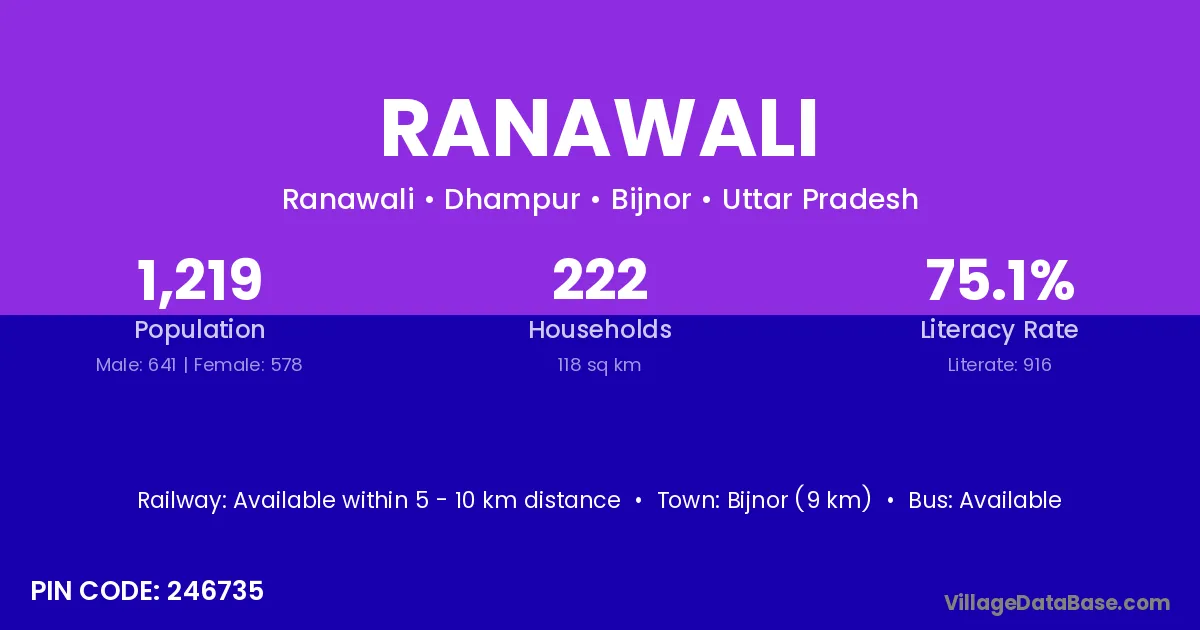 Ranawali village has a total population of 1,219 people, of which 641 are males and 578 are females.
