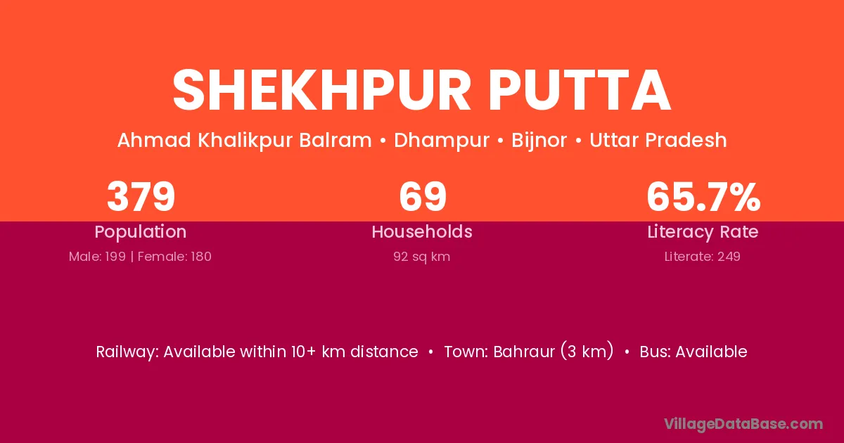 Bahraur (3 km) is the nearest town to Shekhpur Putta village for major economic activities and is located approximately 3 km away.