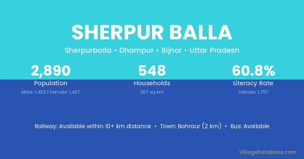 Bahraur (2 km) is the nearest town to Sherpur Balla village for major economic activities and is located approximately 2 km away.