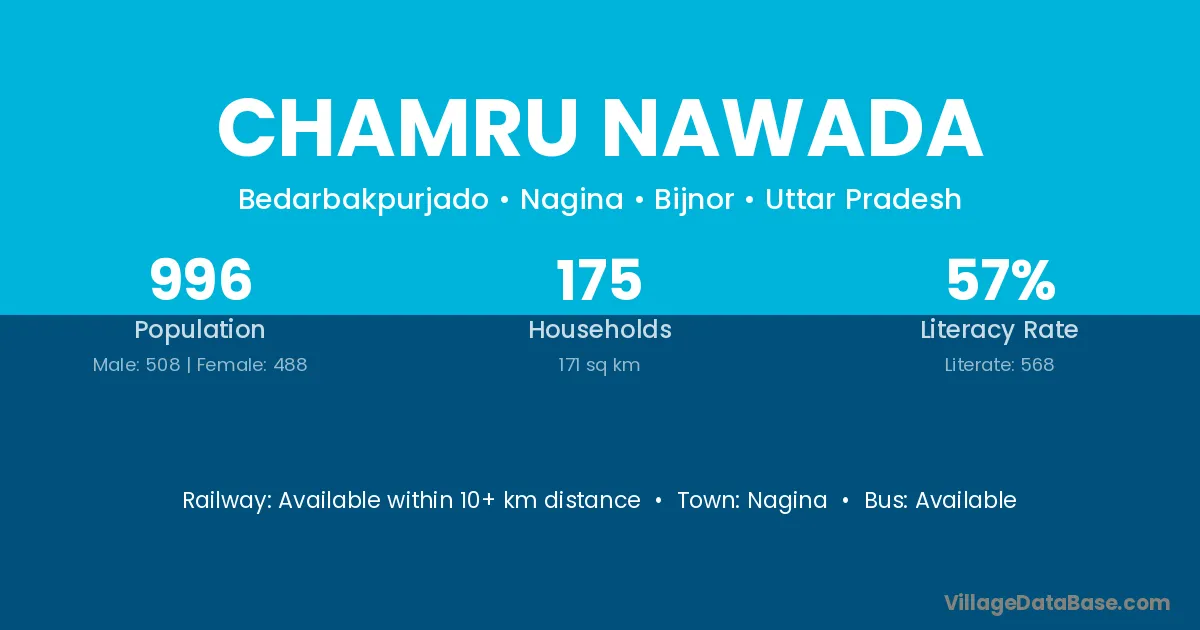 Nagina is the nearest town to Chamru Nawada village for major economic activities