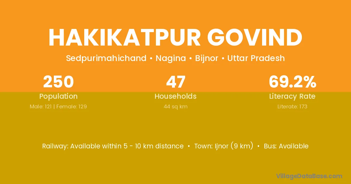 Hakikatpur Govind village has a total population of 250 people, of which 121 are males and 129 are females.