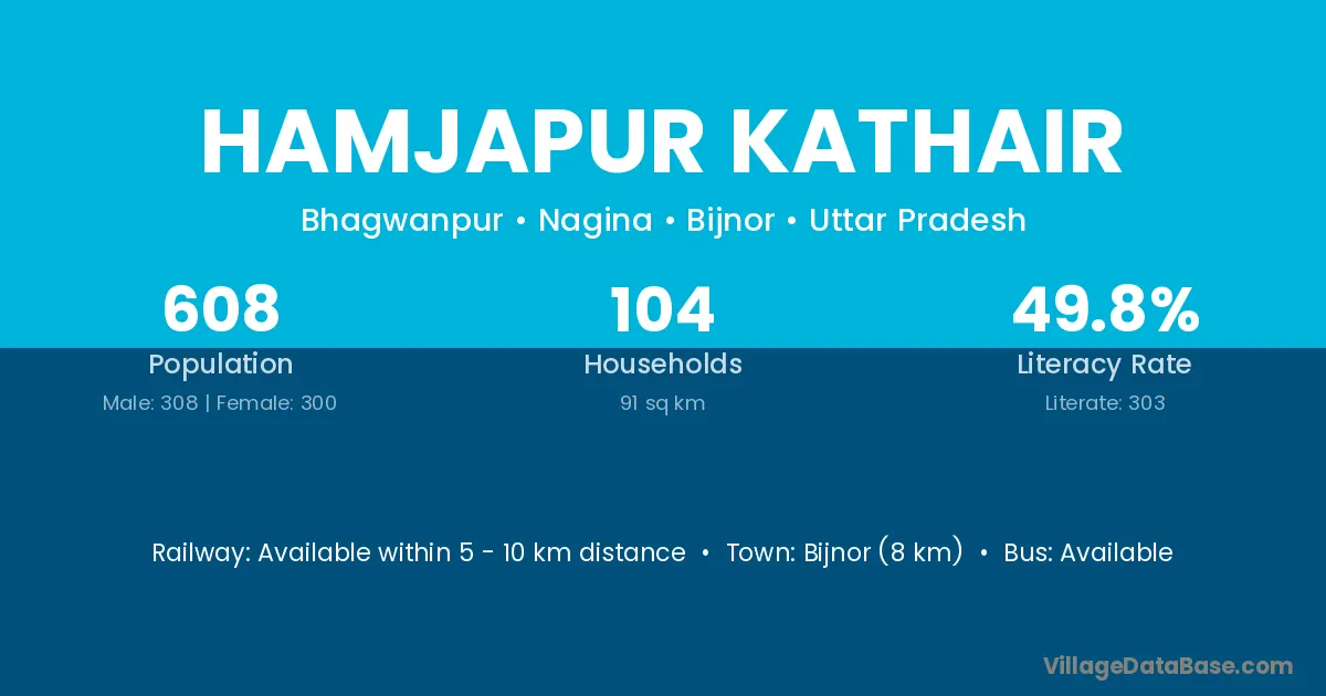 Bijnor (8 km) is the nearest town to Hamjapur Kathair village for major economic activities and is located approximately 8 km away.