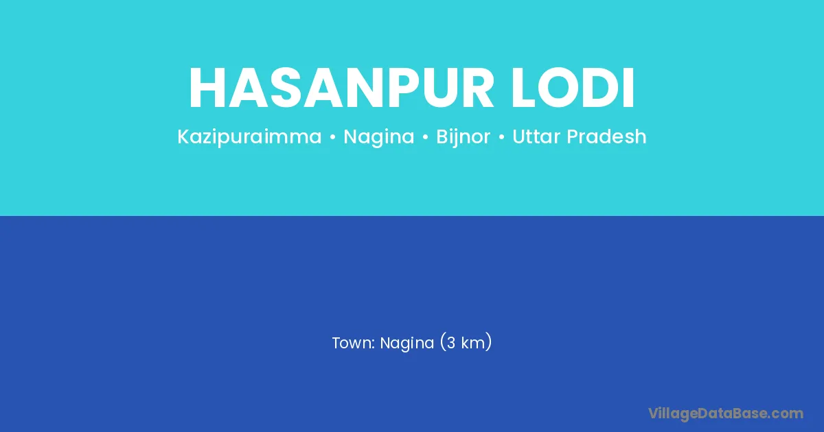 Nagina (3 km) is the nearest town to Hasanpur Lodi village for major economic activities and is located approximately 3 km away.