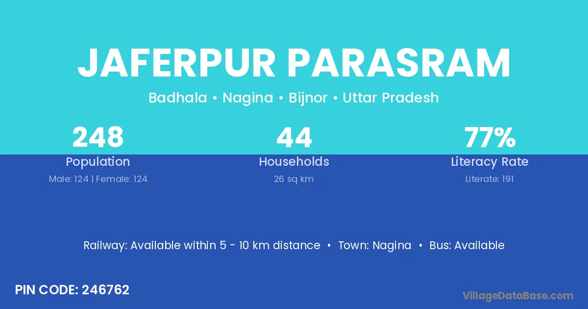 Jaferpur Parasram village has a total population of 248 people, of which 124 are males and 124 are females.