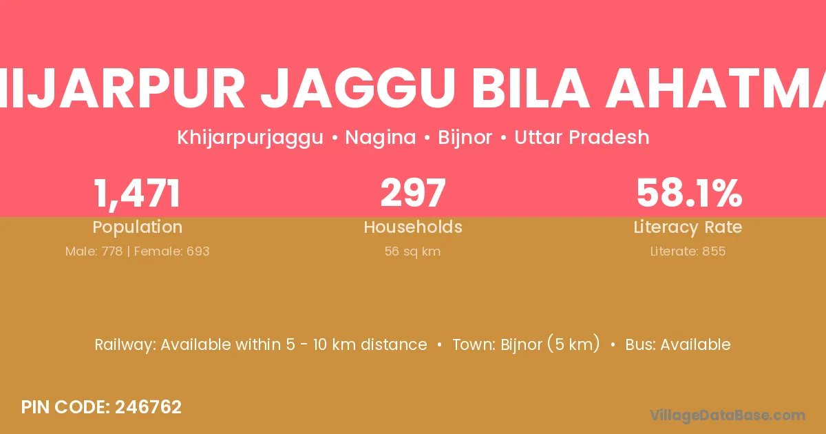 Bijnor (5 km) is the nearest town to Khijarpur Jaggu Bila Ahatmali village for major economic activities and is located approximately 5 km away.