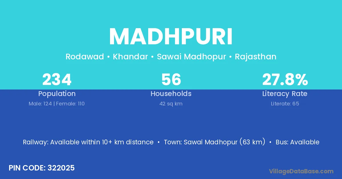 Afjalgarh (20 km) is the nearest town to Madhpuri village for major economic activities and is located approximately 20 km away.