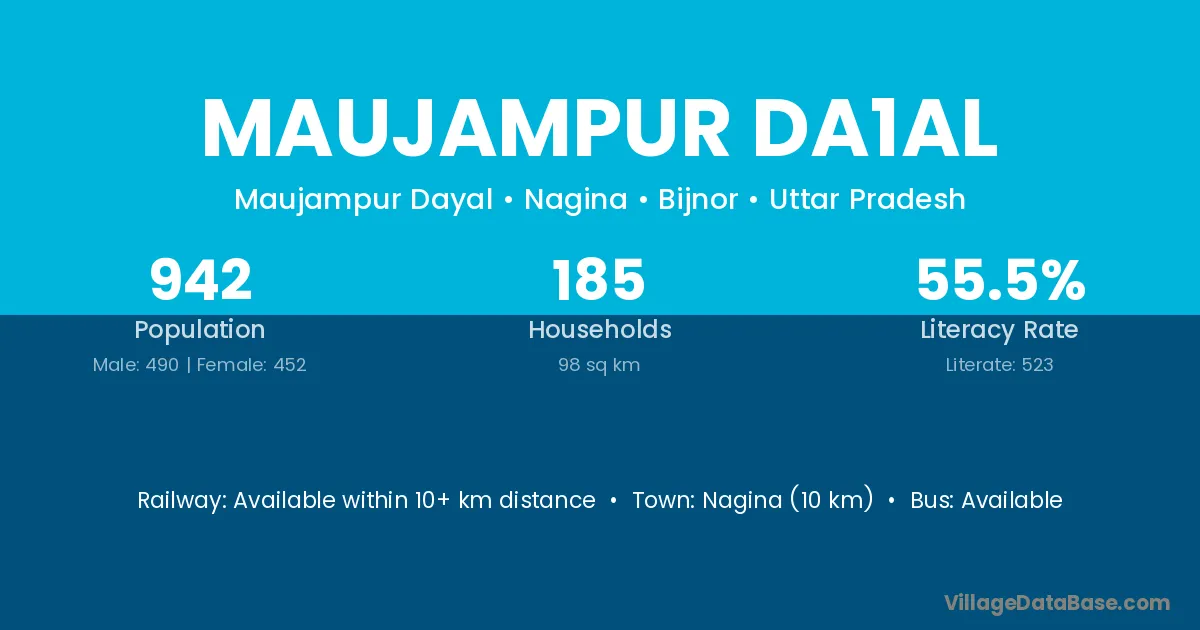 Nagina (10 km) is the nearest town to Maujampur Da1al village for major economic activities and is located approximately 10 km away.
