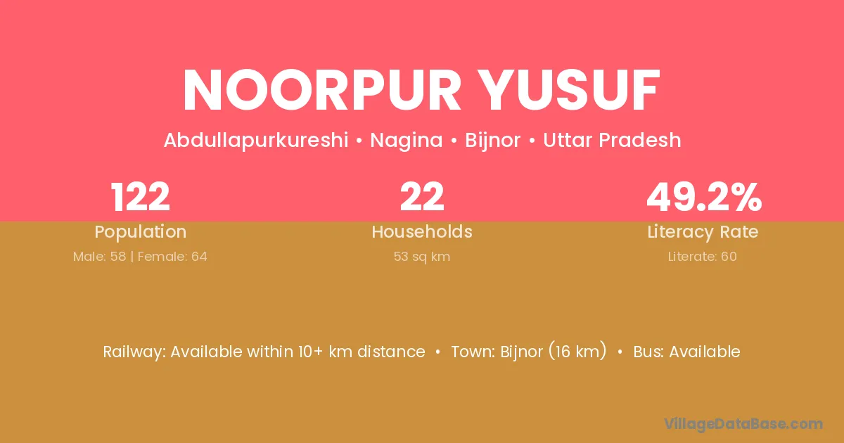 Noorpur Yusuf village has a total population of 122 people, of which 58 are males and 64 are females.