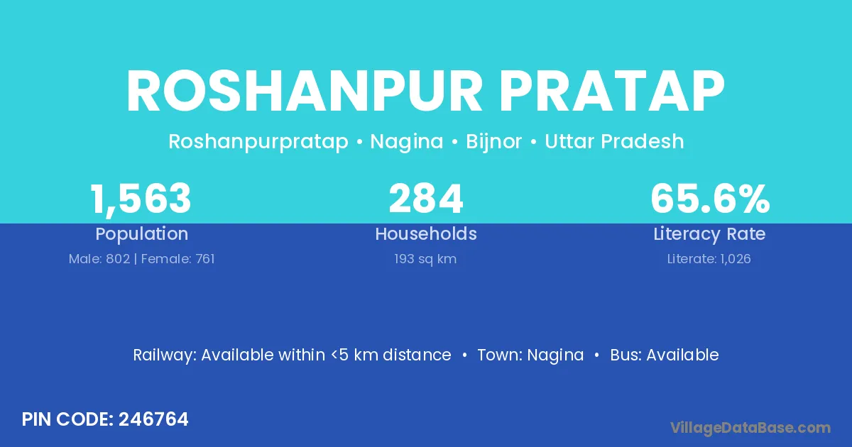 Roshanpur Pratap village has a total population of 1,563 people, of which 802 are males and 761 are females.