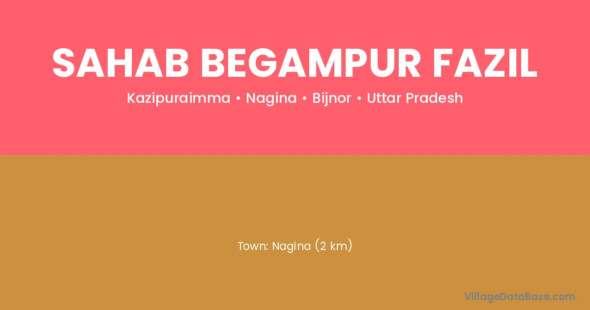 Nagina (2 km) is the nearest town to Sahab Begampur Fazil village for major economic activities and is located approximately 2 km away.