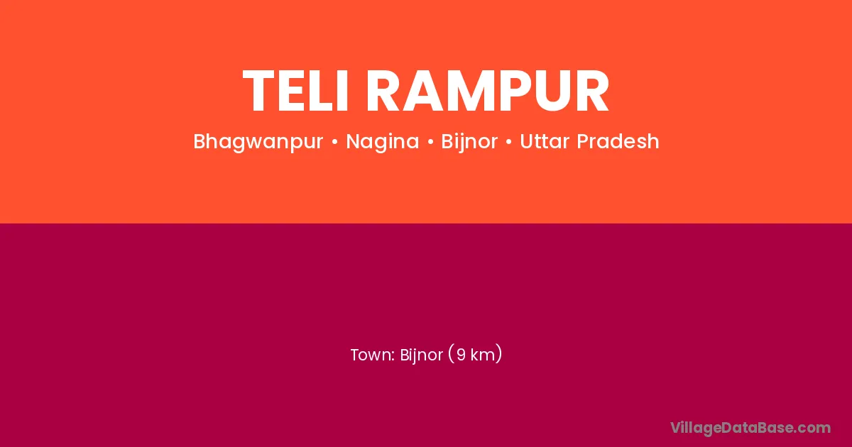 Bijnor (9 km) is the nearest town to Teli Rampur village for major economic activities and is located approximately 9 km away.
