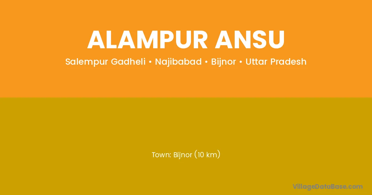 Bijnor (10 km) is the nearest town to Alampur Ansu village for major economic activities and is located approximately 10 km away.
