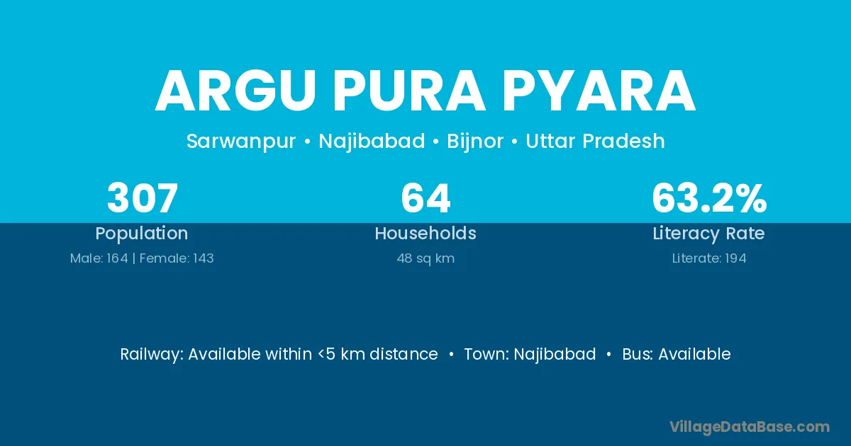Argu Pura Pyara village has a total population of 307 people, of which 164 are males and 143 are females.