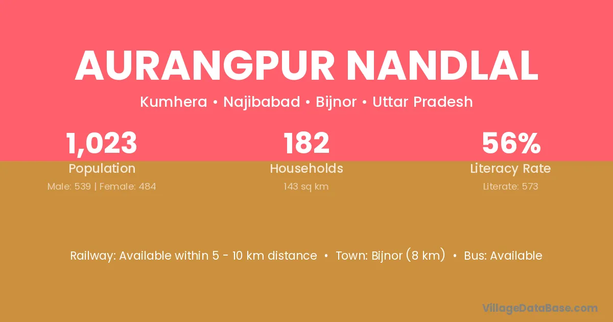 Bijnor (8 km) is the nearest town to Aurangpur Nandlal village for major economic activities and is located approximately 8 km away.