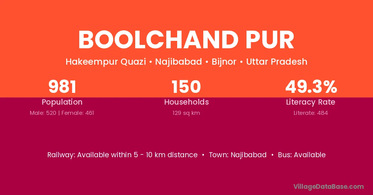 Boolchand Pur village has a total population of 981 people, of which 520 are males and 461 are females.