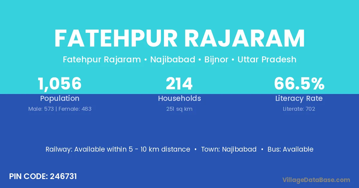 Najibabad is the nearest town to Fatehpur Rajaram village for major economic activities