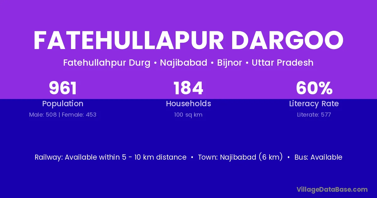 Fatehullapur Dargoo village has a total population of 961 people, of which 508 are males and 453 are females.