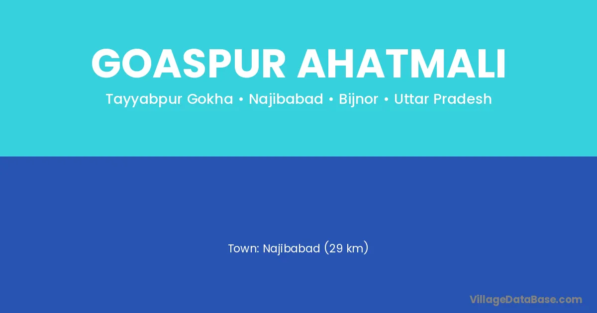 Najibabad (29 km) is the nearest town to Goaspur Ahatmali village for major economic activities and is located approximately 29 km away.
