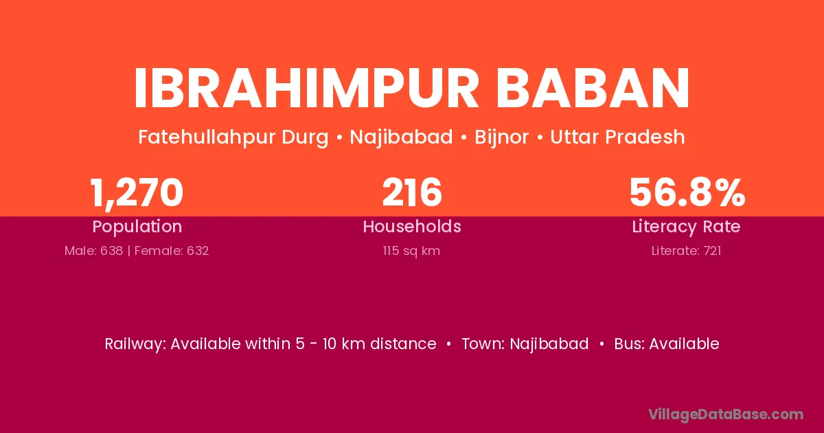 Ibrahimpur Baban village has a total population of 1,270 people, of which 638 are males and 632 are females.