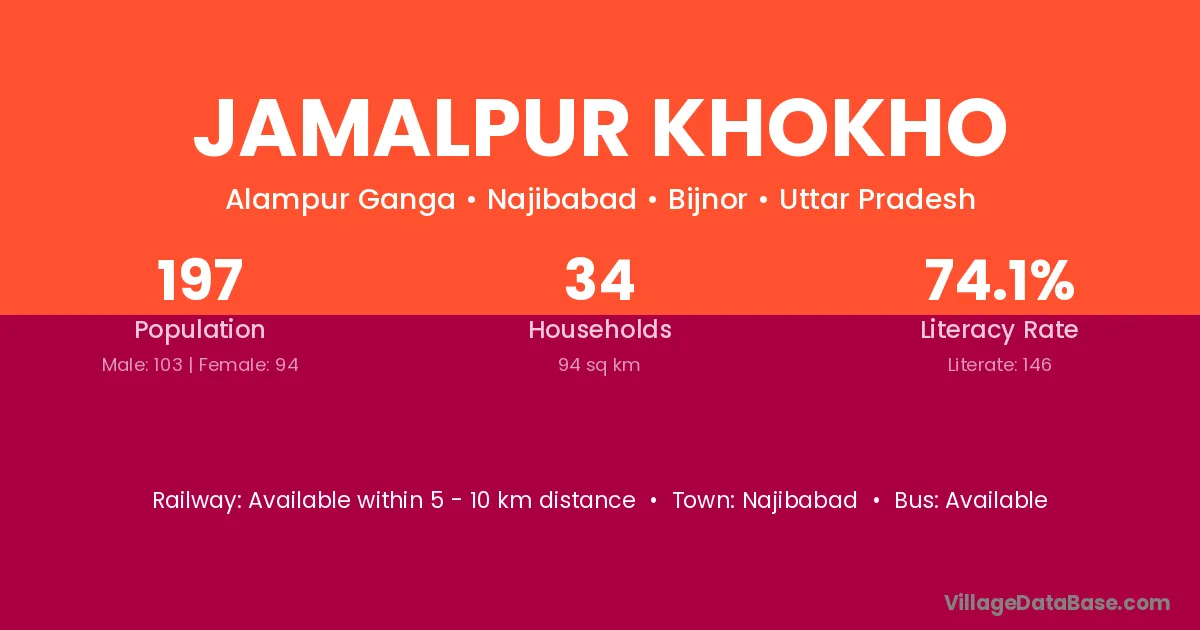 Jamalpur Khokho village has a total population of 197 people, of which 103 are males and 94 are females.